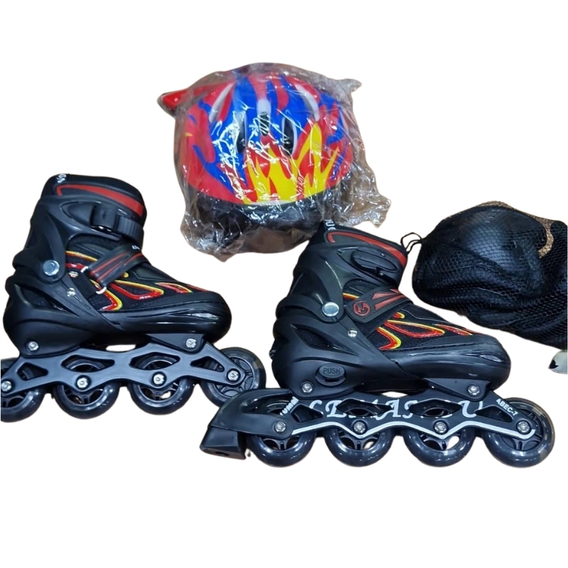 اسکیت کفشی لانگ فنگ مشکی به همراه کلاه و لوازم ایمنی اسکیت